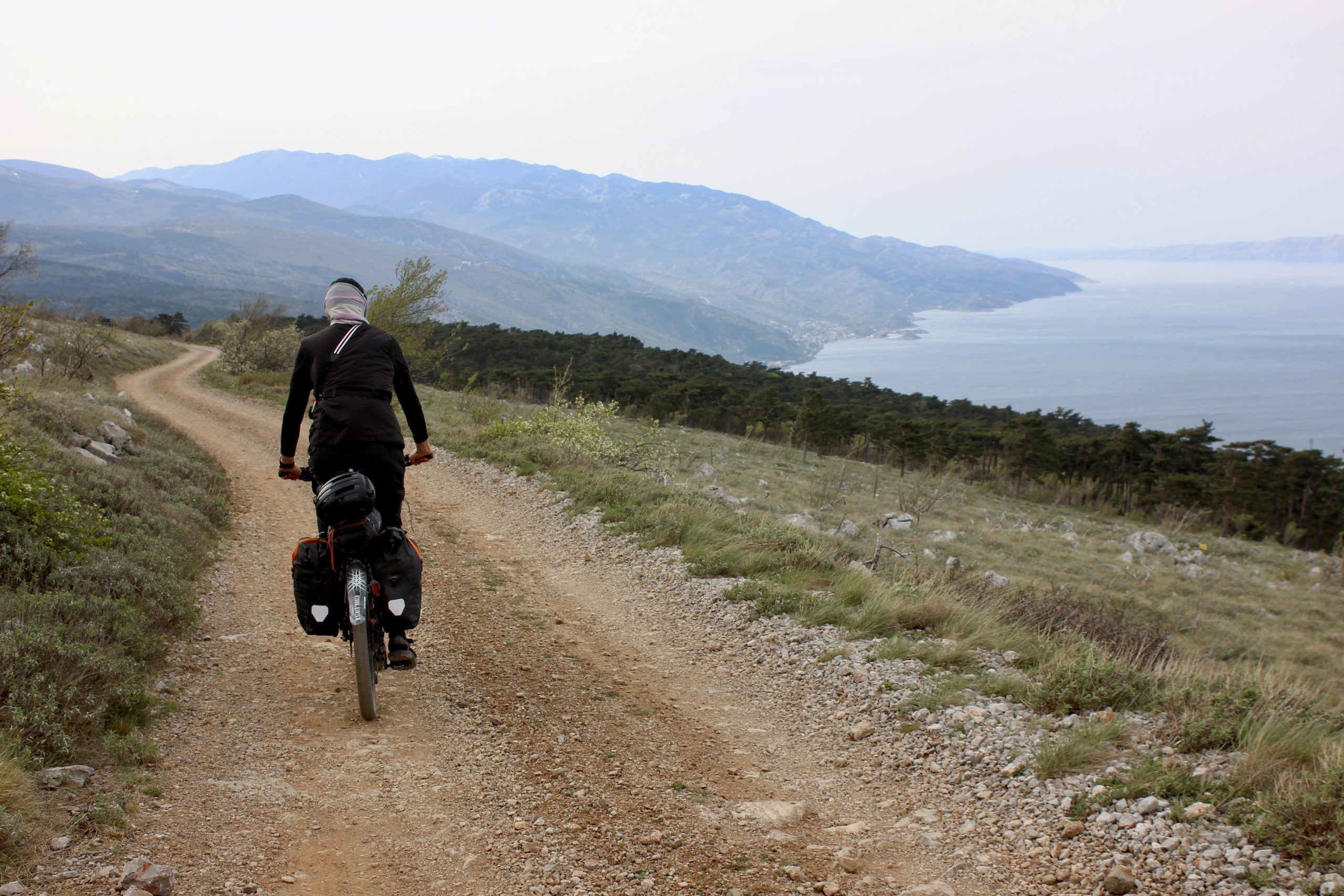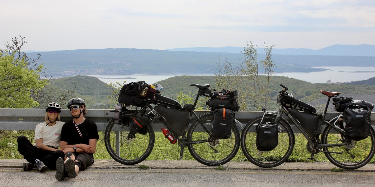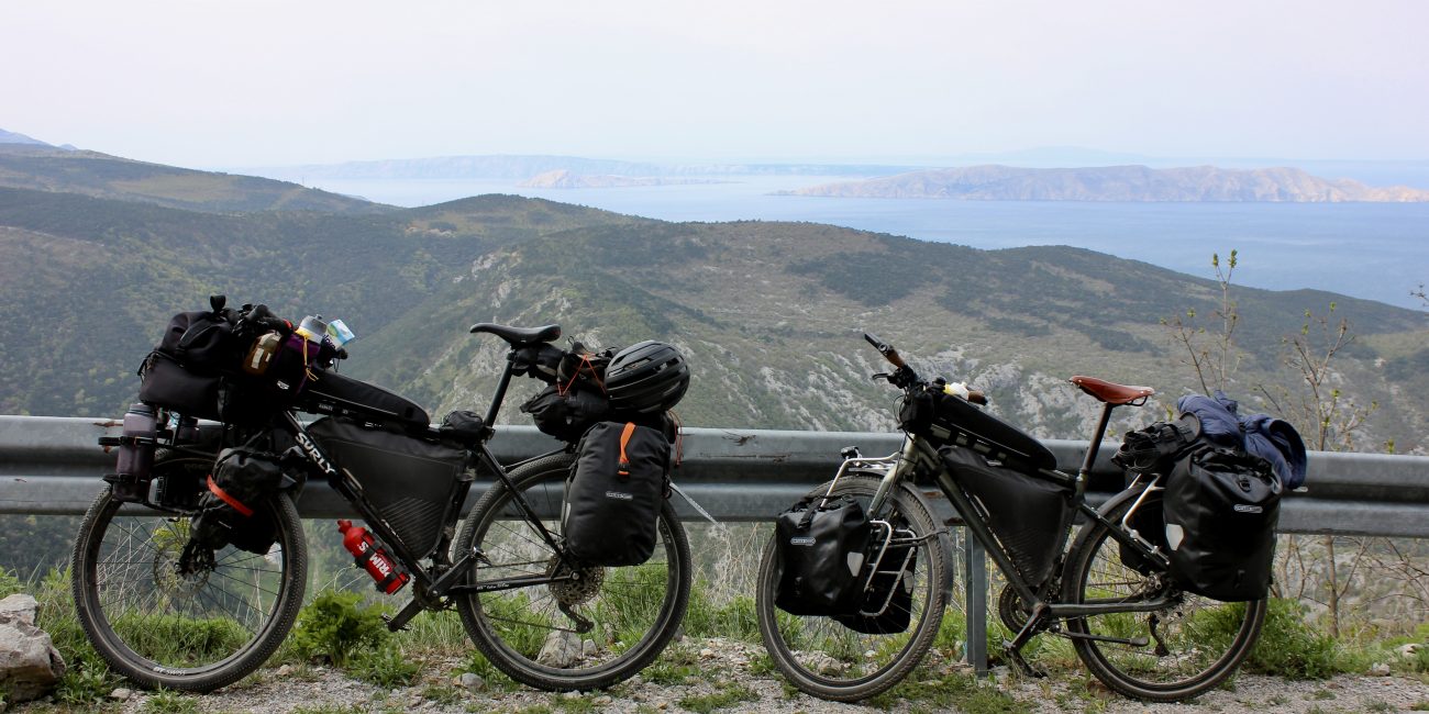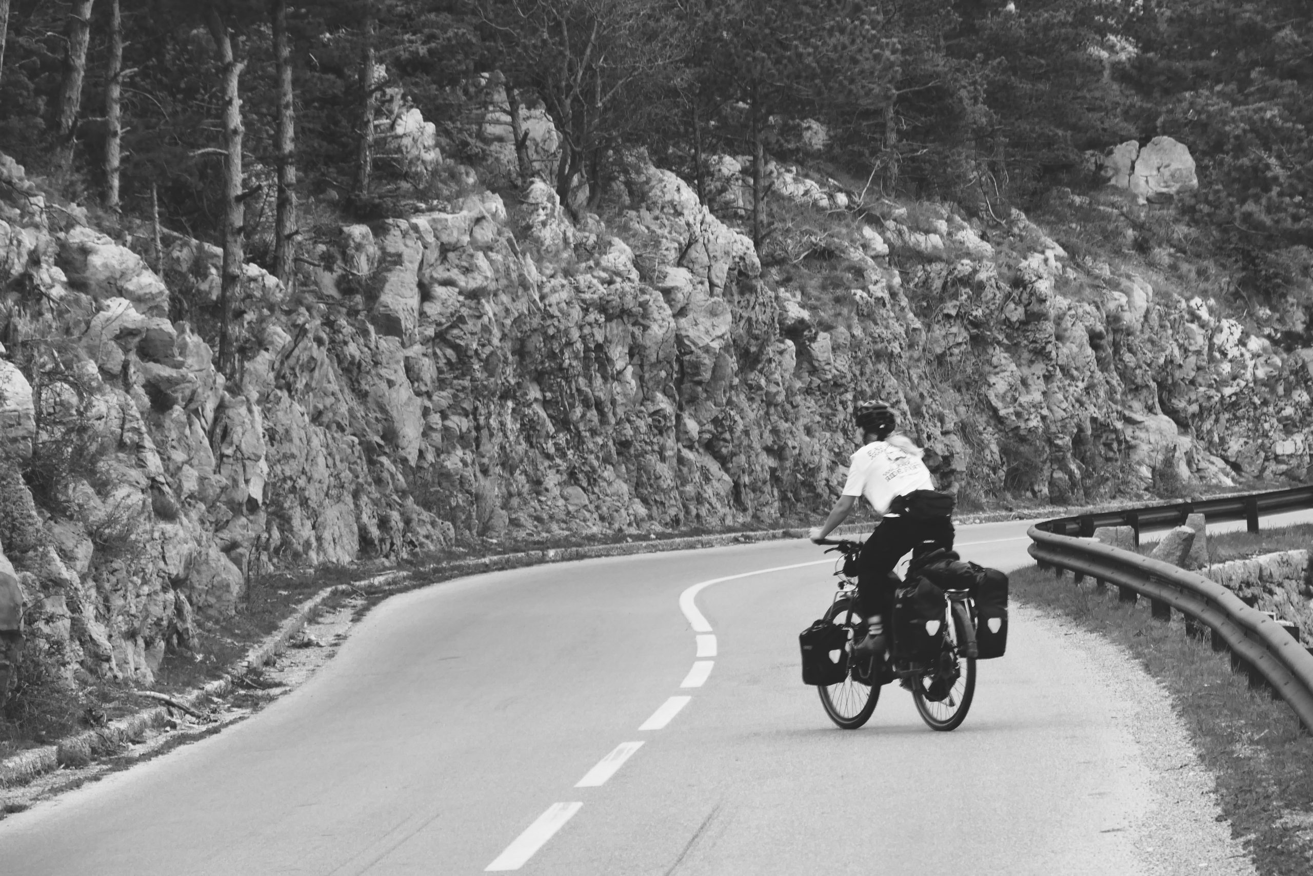 Bikepacker durch Brücke