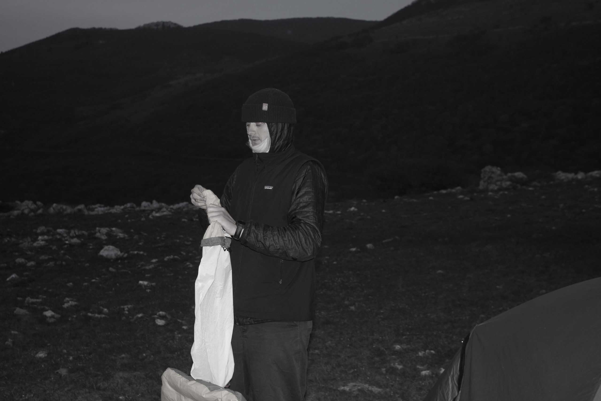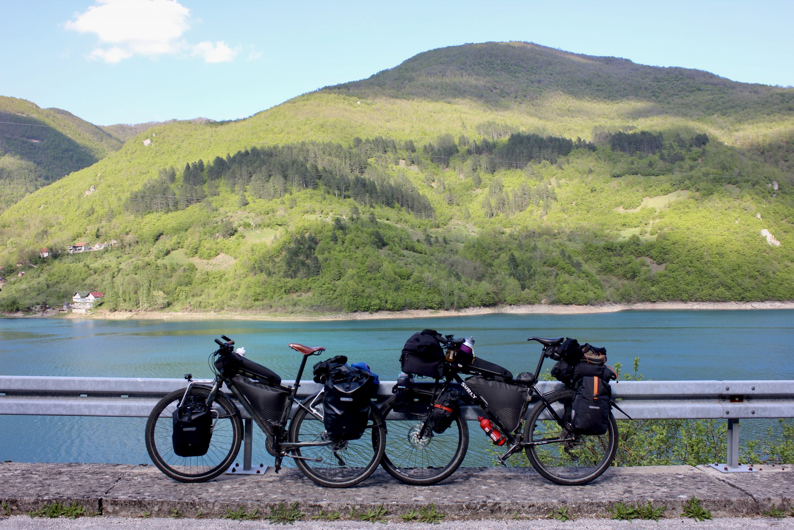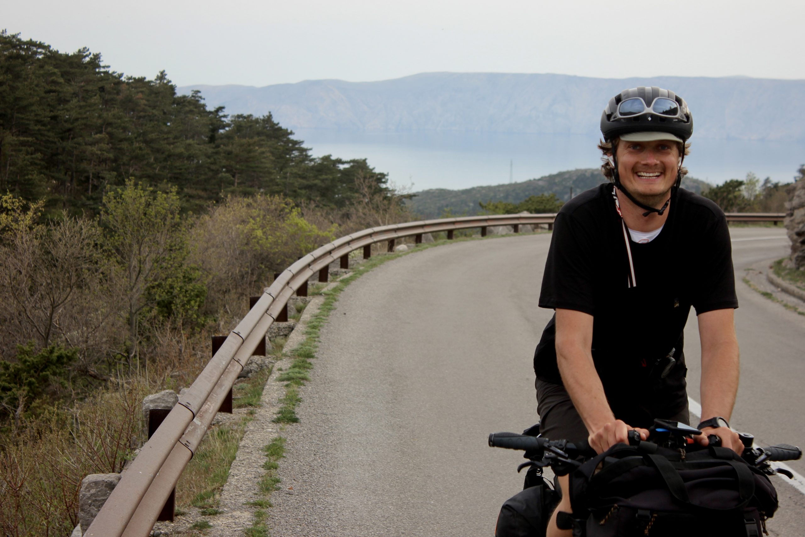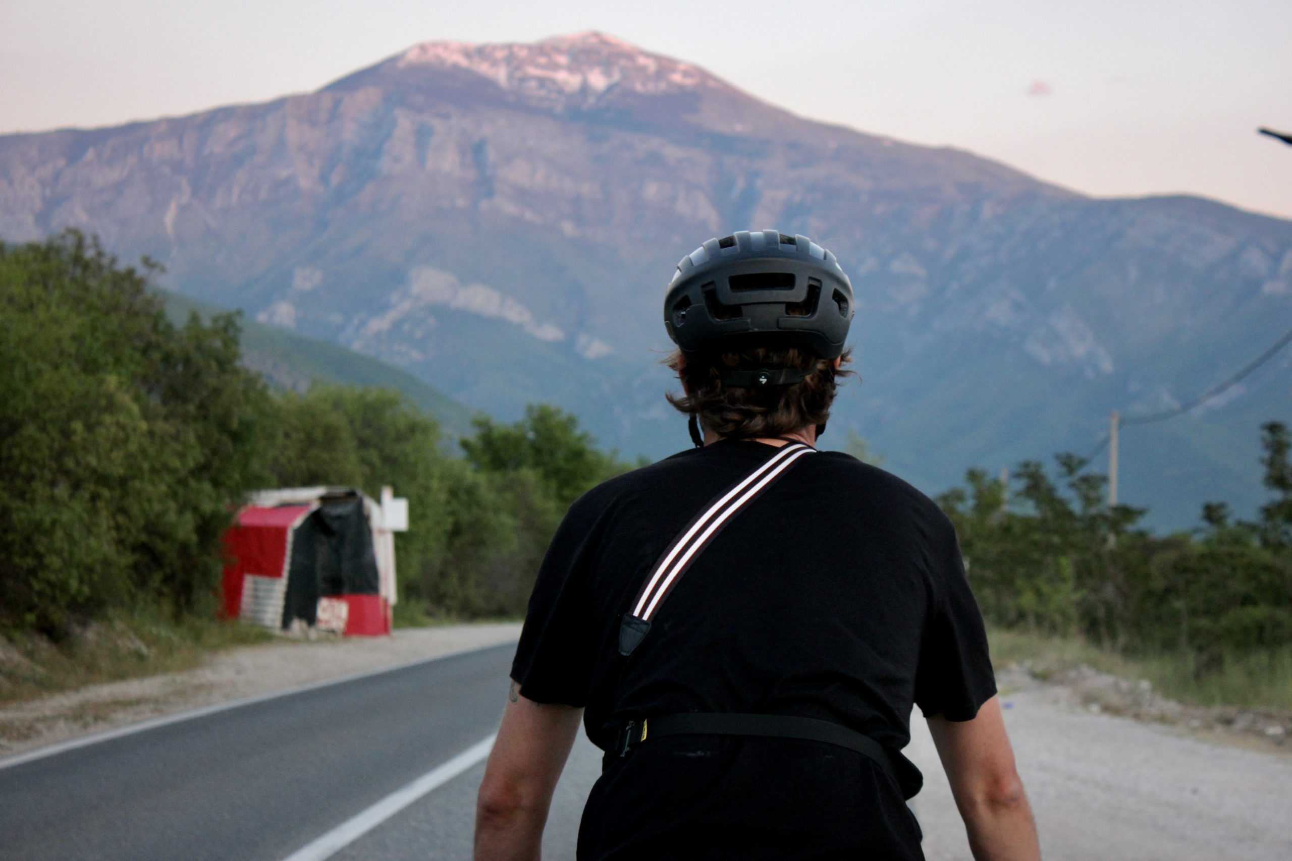 Bikepacker durch Brücke
